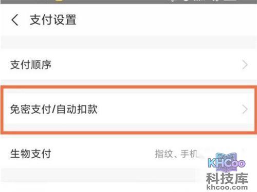 2、选择【支付设置】,找到【免密支付/自动扣款】。