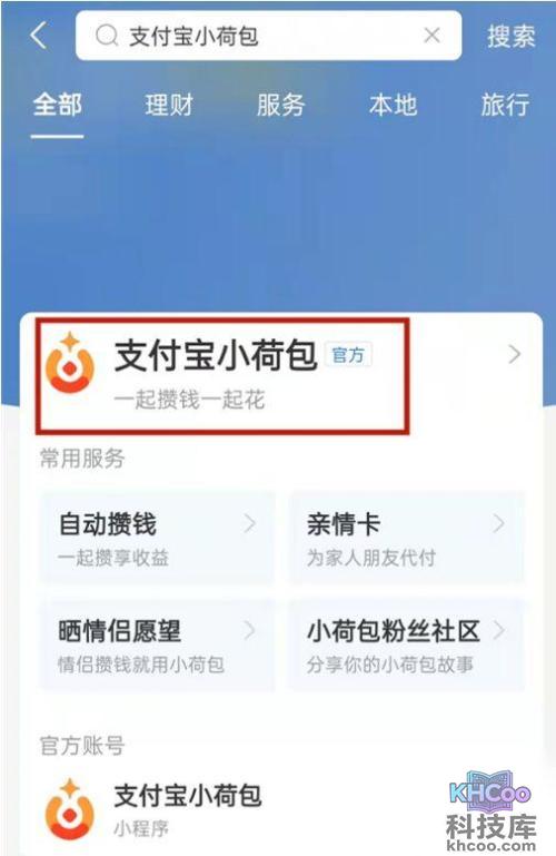 进入支付宝首页,点击上方 搜索 “支付宝小荷包”进入官方小程序。