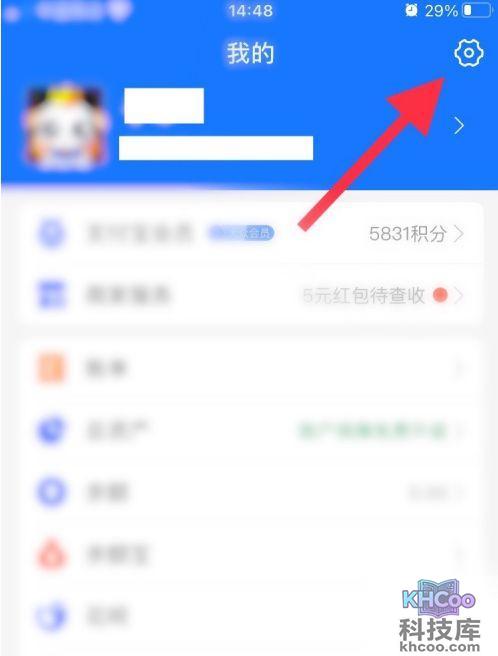 1、打开支付宝APP, 进入“我的”页签,点击界面右上角的设置图标