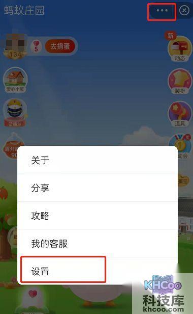 2、进入蚂蚁庄园,点击右上方三个点,进入设置页面。