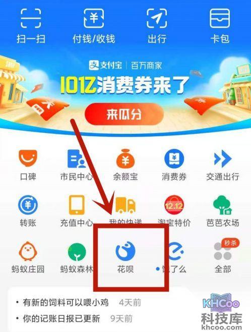 2、进入首页后,点击花呗选项。