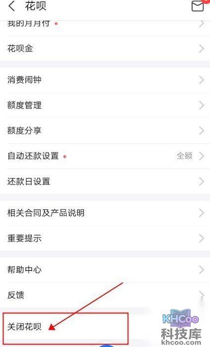 4、将花呗个人页面拉到底部,点击关闭花呗。
