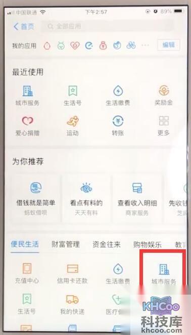 2、在更多的页面里, 便民服务 一栏找到并点击打开【城市服务】,