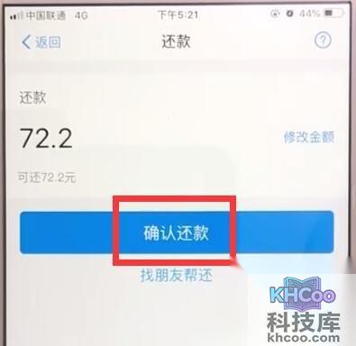 4、最后点击【确认还款】,选择还款途径,密码或指纹验证还款即可。