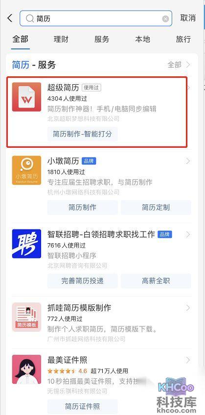 1.在支付宝首页 搜索 简历,就可以看到对应的制作版块