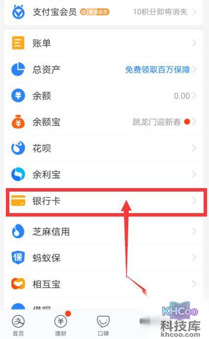 2、选择银行卡并点击进入,
