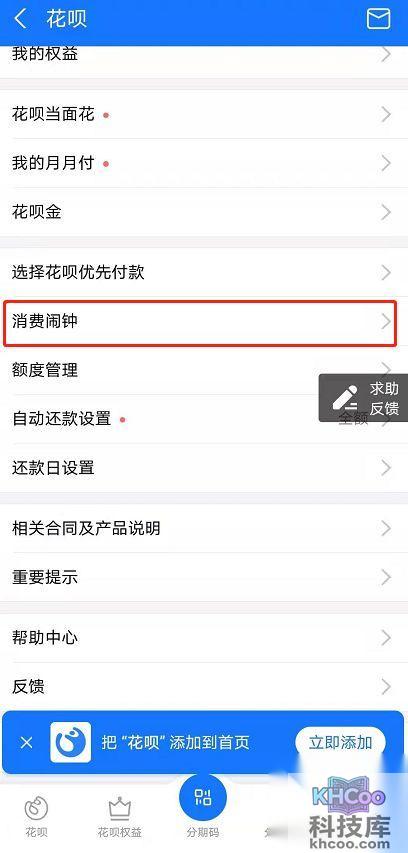 花呗消费闹钟设置