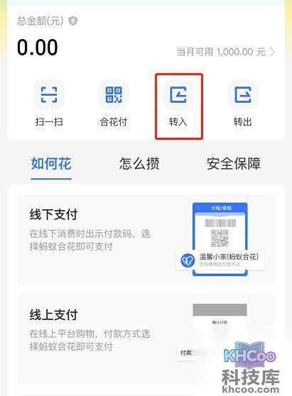 3.在首页可以看到转入和花费的界面