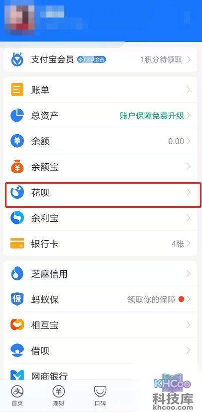 1、打开支付宝页面,在“我的”页面中找到花呗进入。