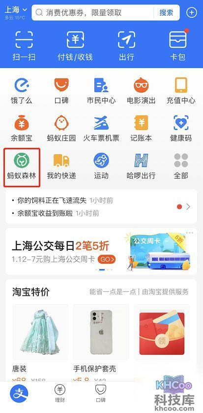 1.在支付宝首页进入蚂蚁森林页面