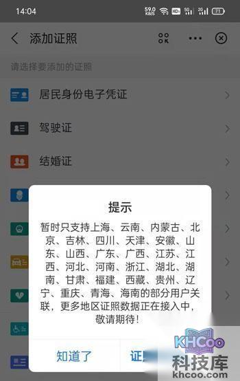 5、需要注意的是,目前只有部分城市支持电子结婚证,具体以弹出的提示窗口为例;