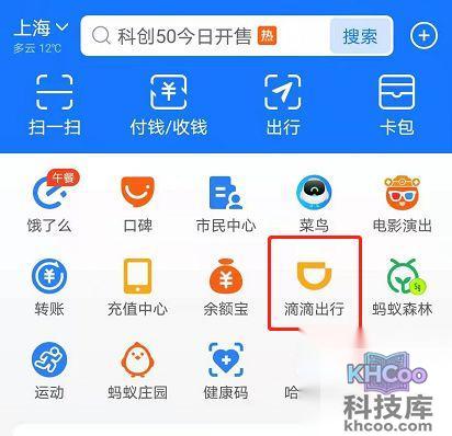 1、打开支付宝首页,点击进入“滴滴出行”。