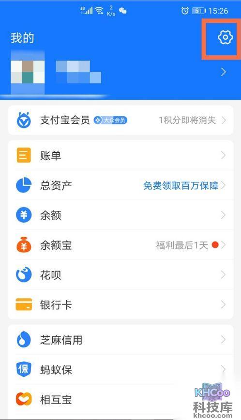 1、在支付宝“我的”界面,点击右上角【设置】。