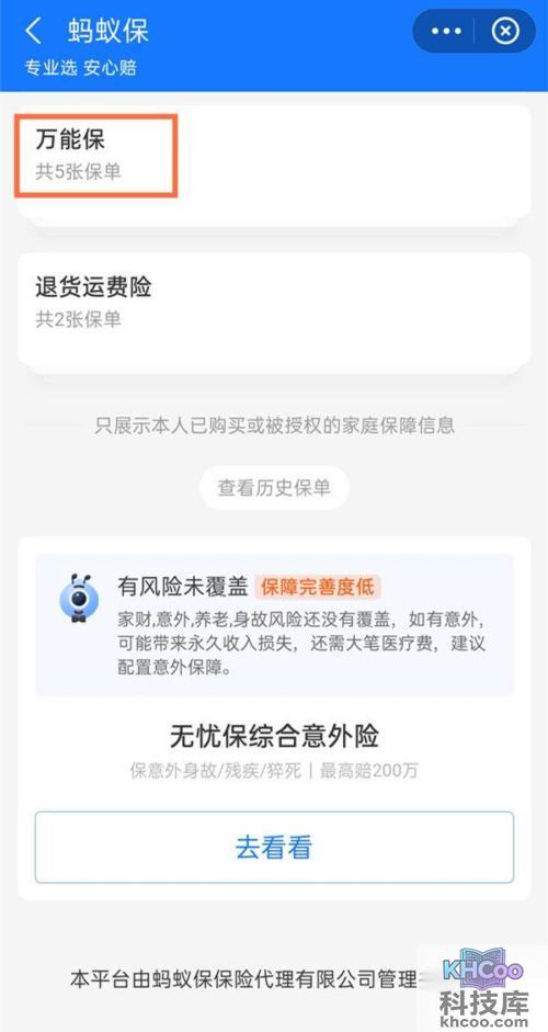 3、在全部保单里点击万能保。