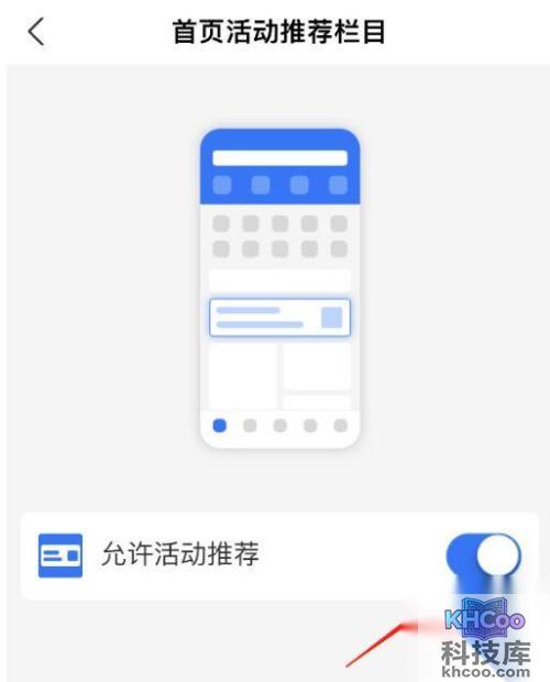 4、点击 允许活动推荐 右侧按钮开启,就能在首页第一时间查看到各项活动了。