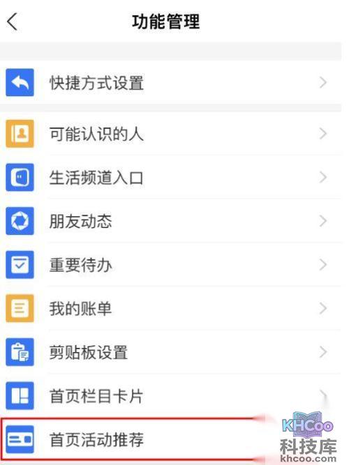 3、在功能管理页面下方可以看到 首页活动推荐 ,点击进入。