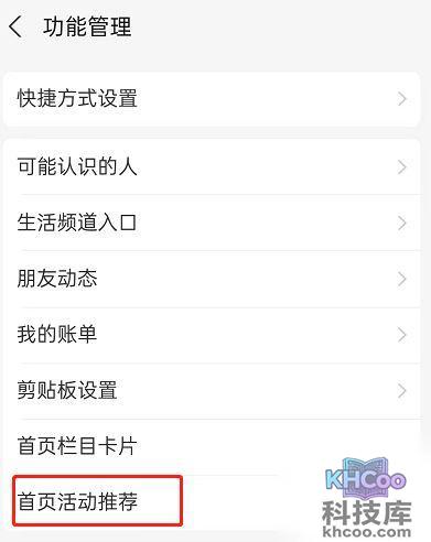 5、移除好卡片后,我们返回到功能管理页面,点击进入首页活动推荐。