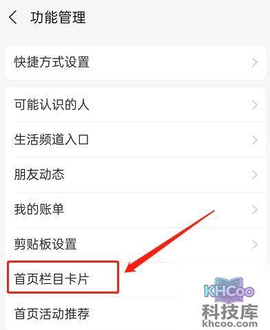 3、点击进入首页栏目卡片。