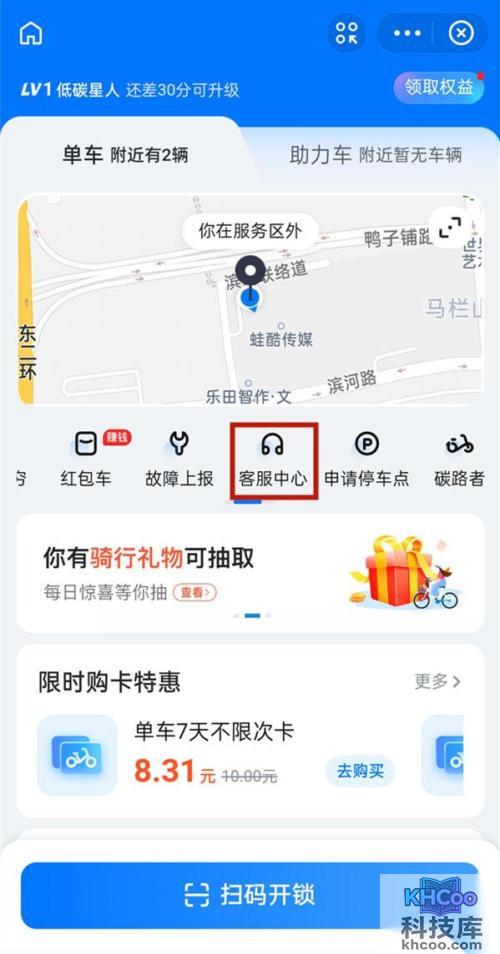1、开启支付宝app, 搜索 哈啰出行,选择单车-客服中心。