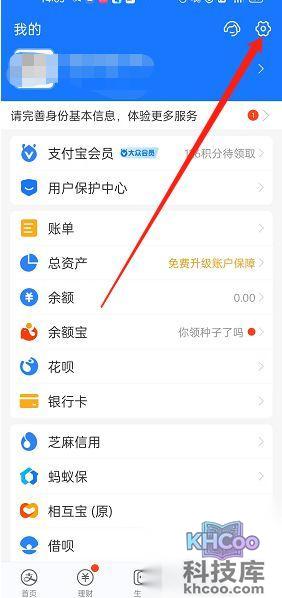 1、打开支付宝,选择上方的设置。