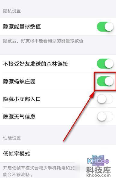 6、 在隐藏蚂蚁庄园处,点击右侧按钮。