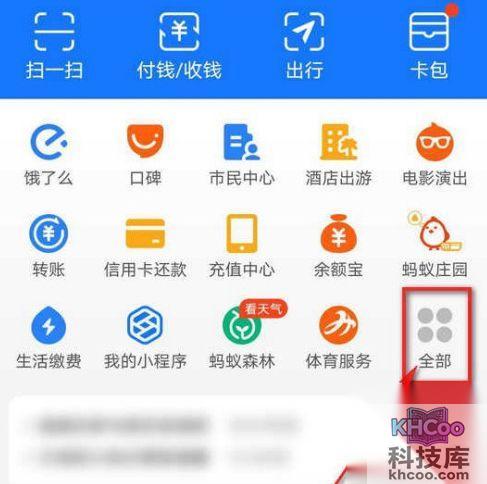 1、进入支付宝“首页”,点击“全部”。