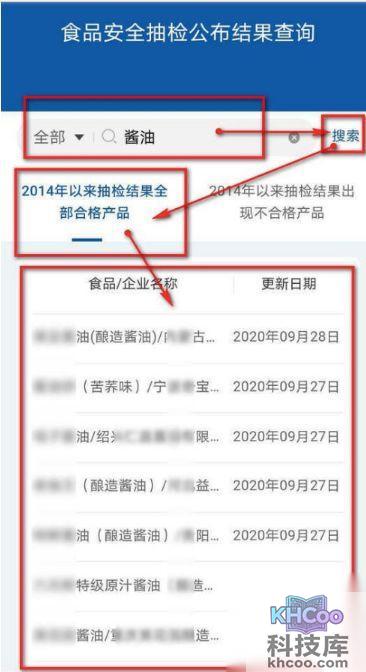 7、搜索框输入所需查询的食品,点击“搜索”,再点击“2014年以来抽检结果全部合格产品”即可查询到所有相关合格产品信息。