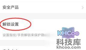 4、在安全解锁的菜单栏里选择手势解锁