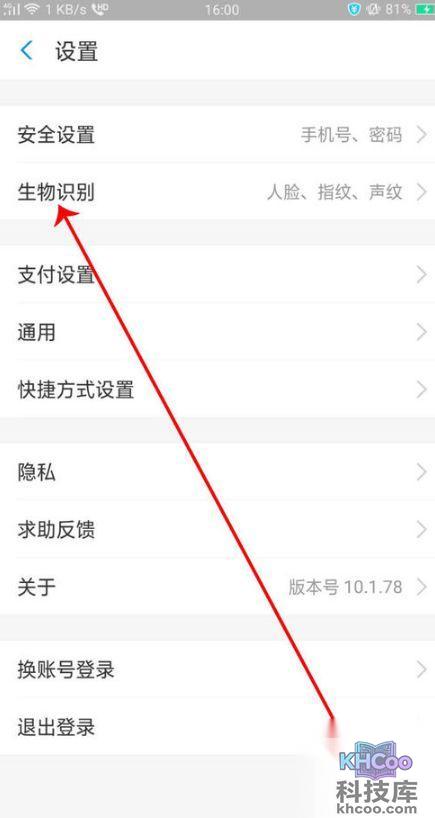 4、然后在设置页面上找到“生物识别”。